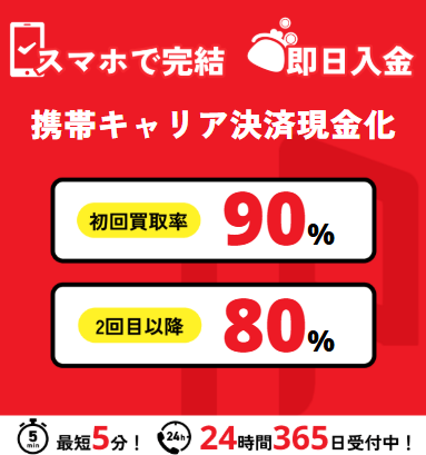 キャリア決済現金化は審査等が一切ないため、基本的に即日入金です。ただしお客様都合によるお手続き不可や、営業時間終了後のお申込みを除きます。